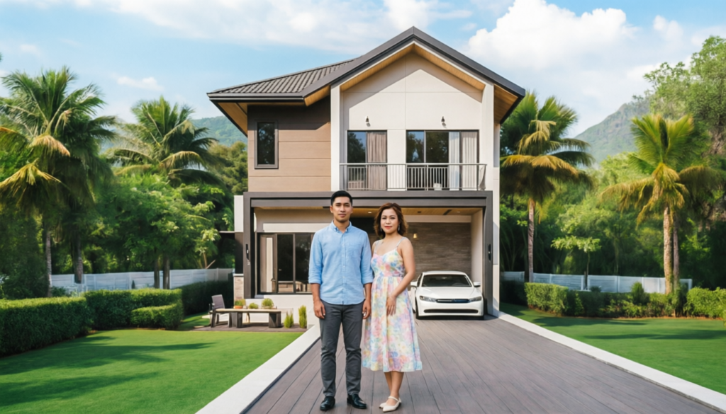 – ผนังบ้าน ใช้โทนสีน้ำตาล-ครีม ผสมกับสีขาวและสีเทา ให้ความรู้สึกอบอุ่นและทันสมัย