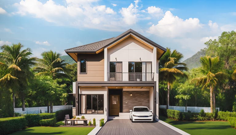 แบบบ้านดีโฮม DH-224 บ้านสองชั้นสไตล์โมเดิร์นทรอปิคอล** (Modern Tropical) ที่มีการออกแบบที่สวยงามและทันสมัย